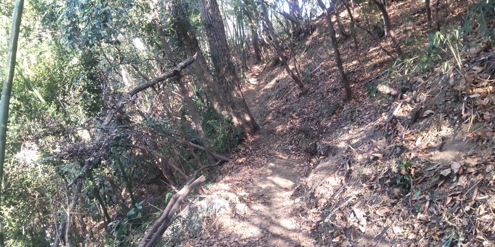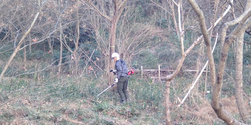 - 正面左尾根の竹の伐採と片付け、及び、倉庫奥の正面斜面の下草刈り