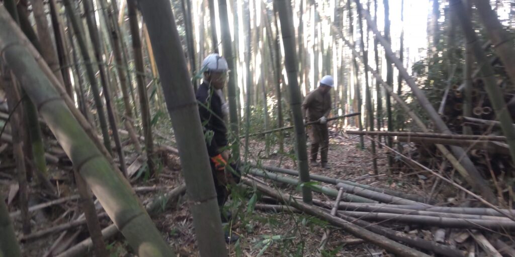 - 小沢緑地竹林内の竹の整理(切り揃えて場外に移動)