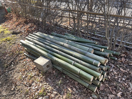 - フジバカマの近くのススキのカット、休憩所周りの刈った笹、竹などの片付け