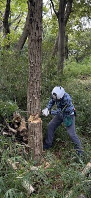 日時 2025/8/17(日)9:00-12:00場所 百草山参加 11名作業 山頂: 竹伐採 北斜面: 草刈り、植生整備 小沢緑地: 竹伐採、植生整備